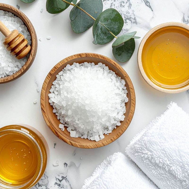 Antes de aplicar a infusão de eucalipto, é importante preparar o corpo com seu banho tradicional, mas feito com presença. Sinta a água quente caindo sobre a pele, aprecie a espuma do sabonete, respire fundo e faça uma leve esfoliação. Esse momento funciona como um “reset”, limpando não só o corpo, mas também criando espaço mental para receber o ritual do eucalipto.